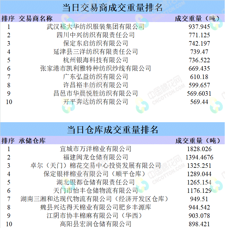 地產(chǎn)棉成交16666.0739噸,成交率83.56%,成交均價(jià)14336元/噸,平均加價(jià)504元/噸,最高成交價(jià)16720元/噸,最低成交價(jià)14120元/噸。新疆棉成交10058.1316噸,成交率100%,成交均價(jià)15273元/噸,平均加價(jià)1012元/噸,最高成交價(jià)16260元/噸,最低成交價(jià)13650元/噸。