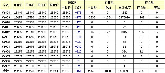 主力CY810合約當(dāng)日交易走勢(shì)
