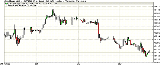8月23日紐約期棉市場跌勢延續(xù)。1812合約結(jié)算價81.49美分,跌80點;1903合約結(jié)算價81.91美分,跌73點;1905合約結(jié)算價82.29美分,跌69點。當日12月合約平穩(wěn)開盤,因缺乏有力支撐交易重心小幅下行,后買盤入場,市場受支撐走高。由于160億美元關(guān)稅加征如期到來,中美貿(mào)易爭端未見緩和趨勢,整個下半場交易呈下行態(tài)勢,最終延續(xù)前一日跌勢。雖然目前中美代表團仍處于貿(mào)易磋商期間,但美國對自中國進口的160億美元產(chǎn)品加征25%關(guān)稅如期到來。商務(wù)部表示,不得不繼續(xù)做出必要反擊。同時,為捍衛(wèi)自由貿(mào)易和多邊體制,捍衛(wèi)自身合法權(quán)益,中方將在世貿(mào)組織爭端解決機制項下就此征稅措施提起訴訟。據(jù)美國農(nóng)業(yè)部(USDA),7.10-7.16一周美國凈簽約出口2018/19年度陸地棉42638噸,陸地棉裝運35698噸;凈簽約本年度皮馬棉1701噸;皮馬棉裝運1724噸;凈簽約2019/20年度陸地棉998噸。外圍美元指數(shù)上漲,玉米、小麥和大豆期貨下跌。