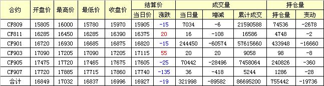 主力CF809合約當(dāng)日交易走勢圖