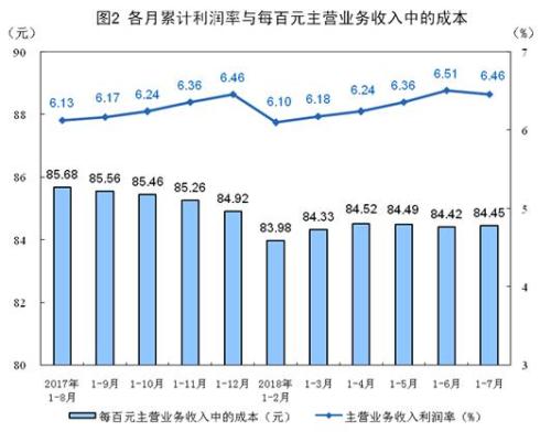 另外,1-7月份,規(guī)模以上工業(yè)企業(yè)實現(xiàn)主營業(yè)務(wù)收入60.5萬億元,同比增長9.9%;發(fā)生主營業(yè)務(wù)成本51.1萬億元,增長9.5%;主營業(yè)務(wù)收入利潤率為6.46%,同比提高0.4個百分點(diǎn)。