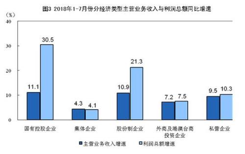 1-7月份,規(guī)模以上工業(yè)企業(yè)中,國有控股企業(yè)實現(xiàn)利潤總額11913.2億元,同比增長30.5%;集體企業(yè)實現(xiàn)利潤總額125.2億元,增長4.1%;股份制企業(yè)實現(xiàn)利潤總額27801億元,增長21.3%;外商及港澳臺商投資企業(yè)實現(xiàn)利潤總額9422.4億元,增長7.5%;私營企業(yè)實現(xiàn)利潤總額10215.1億元,增長10.3%。
