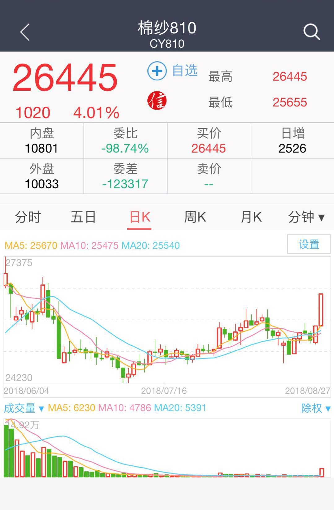 8月27日,商品期貨早盤漲多跌少,棉紗期貨漲停。