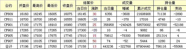 8月28日隔夜鄭棉寬幅震蕩,今日早盤在多頭平倉盤壓制下回落,隨后在空頭回補推動下脫離低點,尾盤調(diào)整,日線形成陰線。日內(nèi)成交量萎縮,持倉量減少?;久媲闆r:8月28日至31日,全疆有大范圍降水降溫天氣,伊犁州、博州、喀什地區(qū)、和田地區(qū)、哈密市等局地累計雨量大。目前,南疆部分棉區(qū)棉花裂鈴,吐魯番市大部棉花吐絮,全疆其余棉區(qū)棉花處于花鈴生長期。預計此次降水降溫天氣對部分棉花的花鈴生長及品質(zhì)有不利影響。