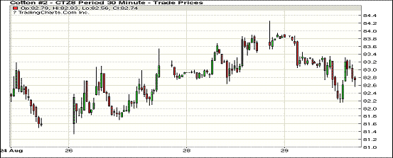 29日紐約期棉市場近月合約收跌。1812合約結(jié)算價82.76美分,跌82點;1903合約結(jié)算價83.21美分,跌64點;1905合約結(jié)算價83.63美分,跌49點。當(dāng)日12月合約高開,但因缺乏有力支撐開盤后交易重心走低,一路向下,至當(dāng)日低點82.15美分處買盤入場,市場受支撐上行,收復(fù)部分失地,但因日內(nèi)跌幅超200點,最終仍以跌勢收盤。美棉出口周報發(fā)布在即,市場普遍關(guān)注中國和土耳其將對簽約和裝運數(shù)據(jù)帶來何種影響。加之美國勞動節(jié)假期即將到來,交易商多持觀望態(tài)度。外圍美元指數(shù)下跌,小麥、玉米和大豆期貨上漲。美股全線收漲,納指標(biāo)普續(xù)創(chuàng)新高。