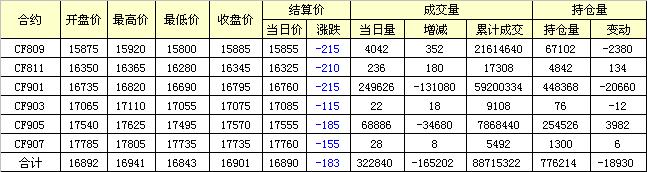 主力CF809合約當(dāng)日交易走勢圖