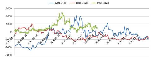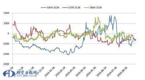 2016年倉單比較少,同時(shí)其流出也較慢;2017年時(shí)從5月開始,價(jià)差-1000左右震蕩幾個(gè)月。但目前9月合約價(jià)格和3128價(jià)差-444元,相比倉單大量流出情況,下方空間最多有500元空間。