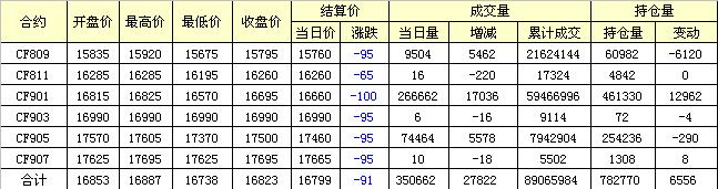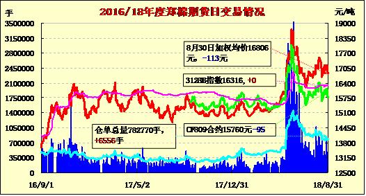 8月31日隔夜鄭棉下滑,今日盤中低位震蕩,午后略有回升,日線形成小陰線。日內(nèi)成交量變化不大,持倉量增加?;久媲闆r:安徽東至天氣以晴好為主,最高氣溫34攝氏度,陽光非常強(qiáng)烈,棉田水分蒸發(fā)較快,棉區(qū)部分棉葉發(fā)黃。30日,當(dāng)?shù)赜瓉硪粓鼋涤?,雖然降雨量不大,但對棉田旱情得到了緩解。目前,當(dāng)?shù)孛藁ㄗ疫肿焱滦跫涌?,中部棉桃也已陸續(xù)吐絮,棉農(nóng)采摘量逐漸增多,部分棉農(nóng)所采摘的籽棉量已達(dá)500多斤。