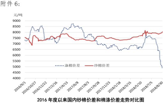 國(guó)內(nèi)棉價(jià)緩慢上升,短期壓力猶存。8月30日國(guó)務(wù)院常務(wù)會(huì)議,預(yù)計(jì)全年再減稅降費(fèi)450億元支持實(shí)體經(jīng)濟(jì)發(fā)展,包括對(duì)因去產(chǎn)能和調(diào)結(jié)構(gòu)等政策性停產(chǎn)停業(yè)企業(yè)給予減稅政策,提高小微企業(yè)貸款利息收入免征增值稅授信額度上限、鼓勵(lì)和吸引境外資本、提高部分產(chǎn)品出口退稅率等措施。利好企業(yè)降低成本,改善資金壓力?;久嫔希局軆?nèi)地山東、河北等地新棉收購價(jià)格最高達(dá)到3.6-3.8元/斤,部分軋花廠已加工出新棉,加工成本在17000元/斤左右;北疆棉株底部的棉桃開始吐絮,南疆新棉尚未吐絮,棉企和棉農(nóng)都在積極招工,市場(chǎng)預(yù)計(jì)9月中旬新棉將集中吐絮采摘。預(yù)計(jì)新花全面上市前,國(guó)內(nèi)產(chǎn)需缺口預(yù)期帶動(dòng)新疆棉開稱價(jià)格炒作有增無減。下游混紡紗價(jià)格快速上漲,棉紗、坯布市場(chǎng)顯回暖態(tài)勢(shì),對(duì)國(guó)內(nèi)棉價(jià)都形成一定程度支撐。但近期部分進(jìn)口棉到港期待配額發(fā)放時(shí)間盡快確定,加上新棉豐產(chǎn)預(yù)期等短期供給壓力不減。外圍美元上漲,美國(guó)威脅下月要對(duì)從中國(guó)進(jìn)口的商品征收額外關(guān)稅,市場(chǎng)恐慌情緒再次升溫,短期內(nèi)拖累國(guó)內(nèi)棉價(jià)緩慢上升步伐。