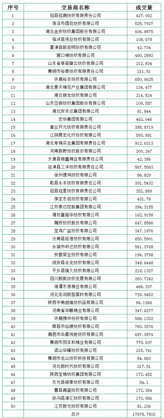 當(dāng)日情況:地產(chǎn)棉成交6113.2289噸,成交率34%,成交均價14353元/噸,平均加價276元/噸,最高成交價15930元/噸,最低成交價13730元/噸。新疆棉成交11565.5213噸,成交率97%,成交均價15186元/噸,平均加價970元/噸,最高成交價16320元/噸,最低成交價14250元/噸。