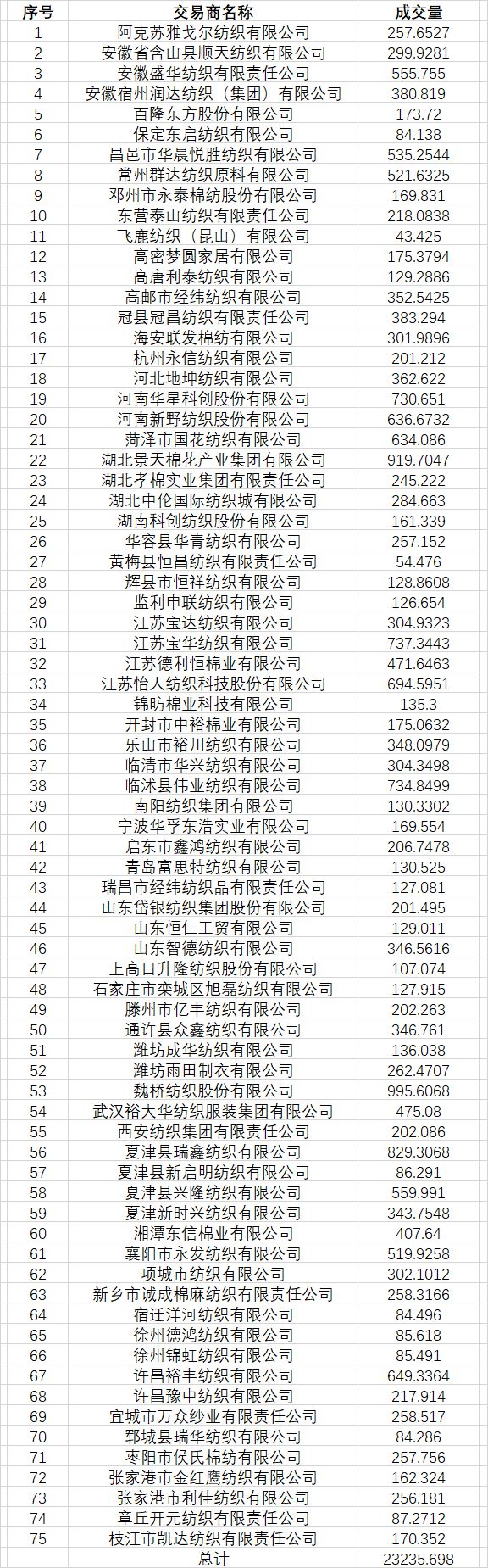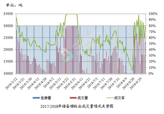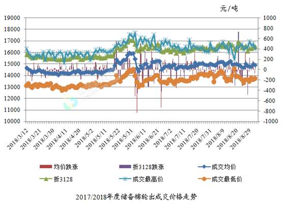 9月4日儲備棉輪出銷售資源30002.7224噸,實際成交23235.698噸,成交率77.45%。平均成交價格15037元/噸(較前一日上漲139元/噸);折3128價格16607元/噸(較前一日上漲121元/噸)。