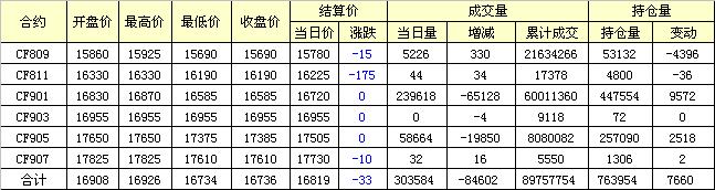 主力CF809合約當(dāng)日交易走勢(shì)圖