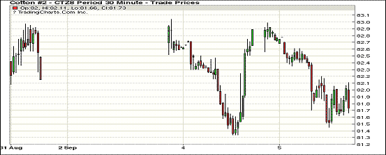 9月5日紐約期棉市場全面收跌。1812合約結算價81.71美分,跌107點;1903合約結算價82.11美分,跌97點;1905合約結算價82.48美分,跌93點。其他合約下跌29-88點不等。當日12月合約平穩(wěn)開盤,開盤后因缺乏有利支撐交易重心下行,后在82.40-82.60美分區(qū)間窄幅震蕩運行,因無利好刺激跌幅加深,低點處買盤入場,市場受支撐小幅回彈,但由于上漲動力不足,最終以跌勢收盤。熱帶風暴Gordon在周二晚間自阿拉巴馬西部和密西西比登陸之后,強度減弱至熱帶氣旋。給三角洲地區(qū)帶來強降雨和大風,預計將于未來幾天入境三角洲北部。其強度不及市場預期。外圍美元指數下跌,玉米、小麥和大豆期貨下跌。