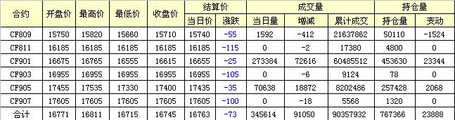主力CF901合約當日交易走勢圖