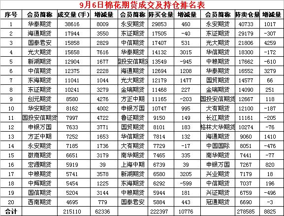 9月6日隔夜鄭棉回升,今早盤下滑,午間一度沖高,但是在高位受到平倉盤打壓下滑,日線形成陰線。日內(nèi)成交量放大,持倉量增加。基本面情況:據(jù)美國農(nóng)業(yè)部(USDA)統(tǒng)計,截至9月2日,美棉新花結(jié)鈴率96%,較去年同期與近五年平均持平。新花吐絮率29%,較去年同期及近五年平均均保持領(lǐng)先。