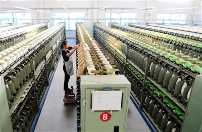 近年來,海安加強(qiáng)技術(shù)改造,提升裝備水平,狠抓品牌引領(lǐng),著力培育壯大紡織產(chǎn)業(yè)新動(dòng)能,推動(dòng)企業(yè)走高質(zhì)量發(fā)展之路。今年2月,江蘇平美紗業(yè)公司新添置28臺(tái)套先進(jìn)紡紗設(shè)備,實(shí)現(xiàn)銷售收入增長1倍、用工成本節(jié)省一半。圖為該公司員工在操作先進(jìn)機(jī)械生產(chǎn)包覆紗。(標(biāo)題:海安加強(qiáng)技術(shù)改造 著力培育紡織產(chǎn)業(yè)新動(dòng)能)