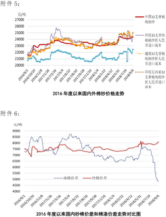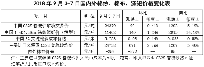 附件2:2018年9月3-7日國內(nèi)外棉紗價格變化表