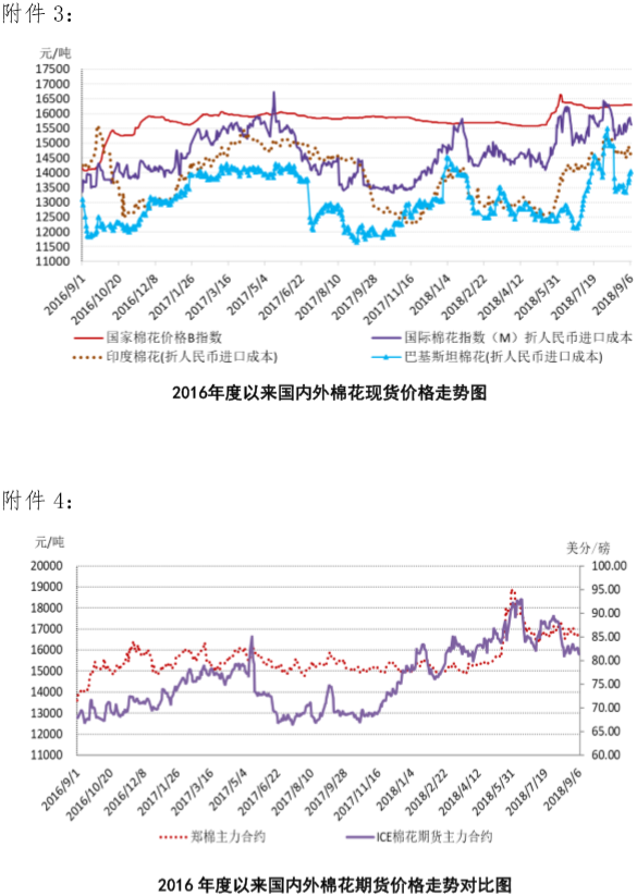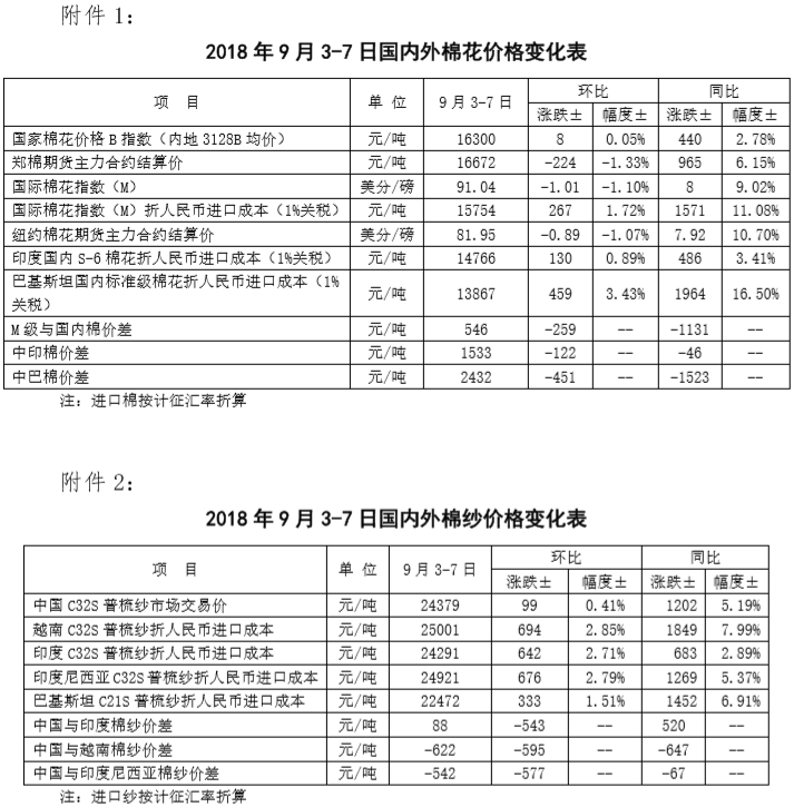 附件1:2018年9月3-7日國內(nèi)外棉花價格變化表