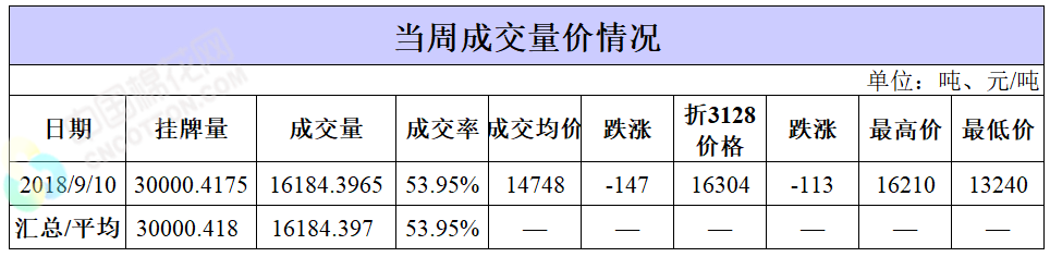 累計情況:截至9月10日,累計計劃出庫384.1萬噸,累計出庫成交224.1萬噸,成交率為58%;成交最高價17700元/噸,最低價12700元/噸。