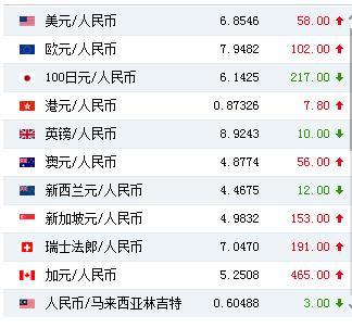 中國人民銀行授權(quán)中國外匯交易中心公布,2018年9月12日銀行間外匯市場人民幣匯率中間價為:1美元對人民幣6.8546元,1歐元對人民幣7.9482元,100日元對人民幣6.1425元,1港元對人民幣0.87326元,1英鎊對人民幣8.9243元,1澳大利亞元對人民幣4.8774元,1新西蘭元對人民幣4.4675元,1新加坡元對人民幣4.9832元,1瑞士法郎對人民幣7.0470元,1加拿大元對人民幣5.2508元,人民幣1元對0.60488馬來西亞林吉特,人民幣1元對10.1212俄羅斯盧布,人民幣1元對2.1981南非蘭特,人民幣1元對164.04韓元,人民幣1元對0.53593阿聯(lián)酋迪拉姆,人民幣1元對0.54728沙特里亞爾,人民幣1元對40.8338匈牙利福林,人民幣1元對0.54149波蘭茲羅提,人民幣1元對0.9384丹麥克朗,人民幣1元對1.3200瑞典克朗,人民幣1元對1.2144挪威克朗,人民幣1元對0.93907土耳其里拉,人民幣1元對2.8003墨西哥比索,人民幣1元對4.7817泰銖。