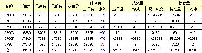 主力CF901合約當(dāng)日交易走勢(shì)圖