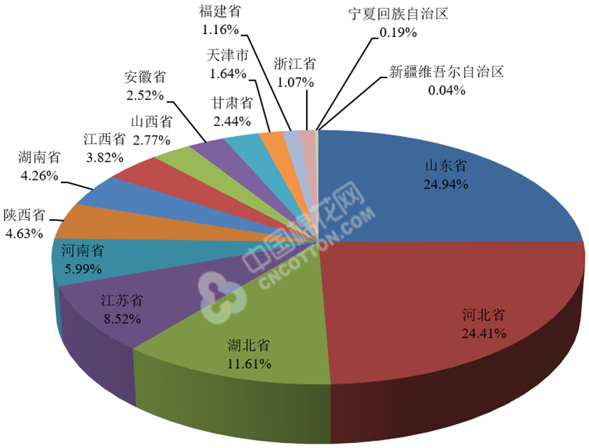 2017/2018年度儲(chǔ)備棉出庫(kù)銷(xiāo)售截至9月14日主要省份累計(jì)成交情況圖