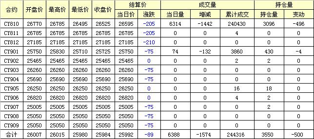 主力CY810合約當日交易走勢