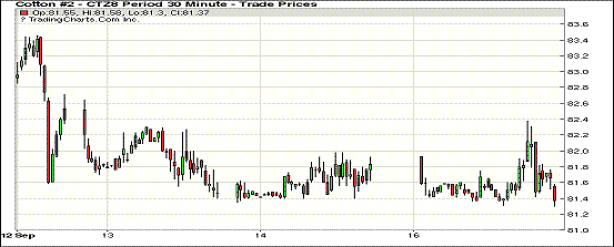 17日紐約期棉市場全面收跌。1812合約結(jié)算價(jià)81.31美分,跌52點(diǎn);1903合約結(jié)算價(jià)81.64美分,跌50點(diǎn);1905合約結(jié)算價(jià)82.20美分,跌44點(diǎn)。其他合約下跌13-39點(diǎn)不等。當(dāng)日12月合約小幅高開,開盤后在81.30-81.80美分區(qū)間震蕩運(yùn)行,后低點(diǎn)處買盤發(fā)力,交易重心受支撐走高,高點(diǎn)處受獲利了結(jié)盤壓力市場下行,后至收盤處維持震蕩態(tài)勢,最終以小幅下跌收盤。目前颶風(fēng)Florence強(qiáng)度已減弱至熱帶風(fēng)暴,其造成的影響或?qū)⒃?0月份美國農(nóng)業(yè)部(USDA)數(shù)據(jù)調(diào)整中有所體現(xiàn)。上周末期間印度主產(chǎn)棉區(qū)迎來有利降雨。2017/18年度印度棉出口數(shù)據(jù)良好,但由于印度盧比持續(xù)貶值,印度棉價(jià)格相對(duì)較低。外圍美元指數(shù)下跌,玉米、小麥和大豆期貨下跌。