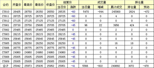 主力CY810合約當(dāng)日交易走勢(shì)