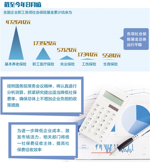 社保費(fèi)率如進(jìn)一步降低,是否會影響到社保基金運(yùn)行?從各項(xiàng)社?;疬\(yùn)行情況看,截至今年8月底,全國企業(yè)職工基本養(yǎng)老保險(xiǎn)、職工醫(yī)療保險(xiǎn)、失業(yè)保險(xiǎn)、工傷保險(xiǎn)、生育保險(xiǎn)基金累計(jì)結(jié)余分別為47264億元、17392億元、5712億元、1734億元、558億元,各項(xiàng)社會保險(xiǎn)基金總體運(yùn)行平穩(wěn)。