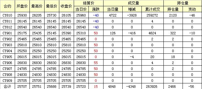 主力CY810合約當日交易走勢