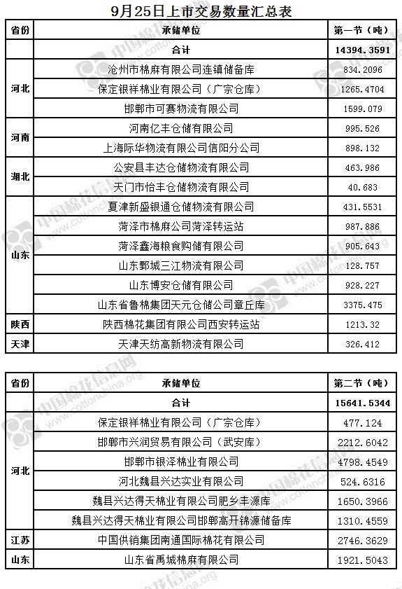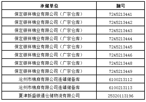 5、邯鄲市興潤貿(mào)易有限公司(武安庫)部分,邯鄲市銀澤棉業(yè)有限公司,河北魏縣興達(dá)實業(yè)有限公司,魏縣興達(dá)得天棉業(yè)有限公司邯鄲高開錦源儲備庫,江蘇潤澤基業(yè)物流有限公司,山東省禹城棉麻有限公司,為實施按批抽樣方式檢驗的承儲庫,由于掛牌較為集中,請買方妥善協(xié)商安排出庫。