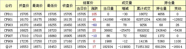 主力CF901合約當(dāng)日交易走勢圖