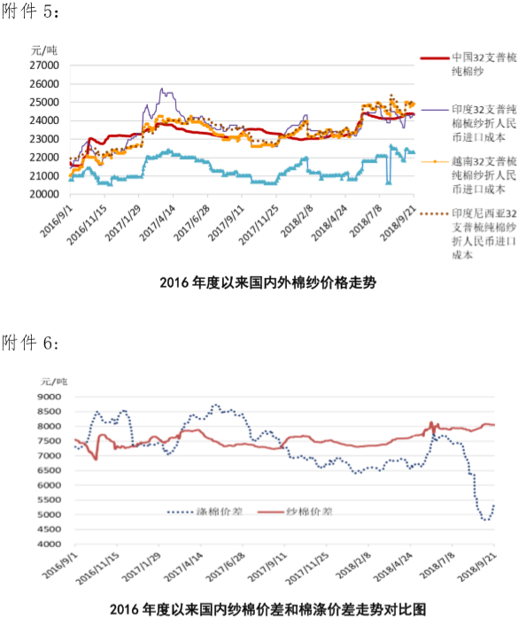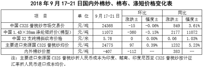 附件2:2018年9月17-21日國內(nèi)外棉紗價(jià)格變化表