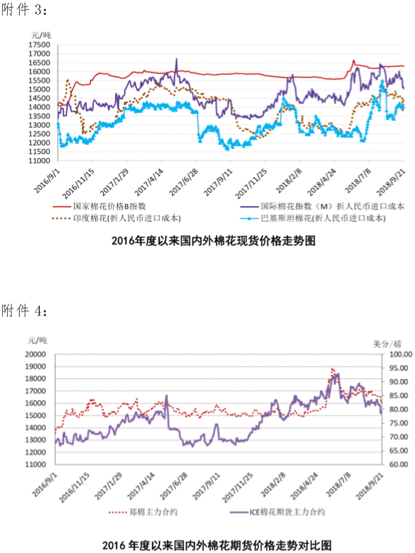 附件1:2018年9月17-21日國內(nèi)外棉花價(jià)格變化表