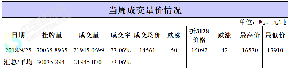 累計情況:截至9月25日,累計計劃出庫414.55萬噸,累計出庫成交243.35萬噸,成交率為59%;成交最高價17700元/噸,最低價12700元/噸。