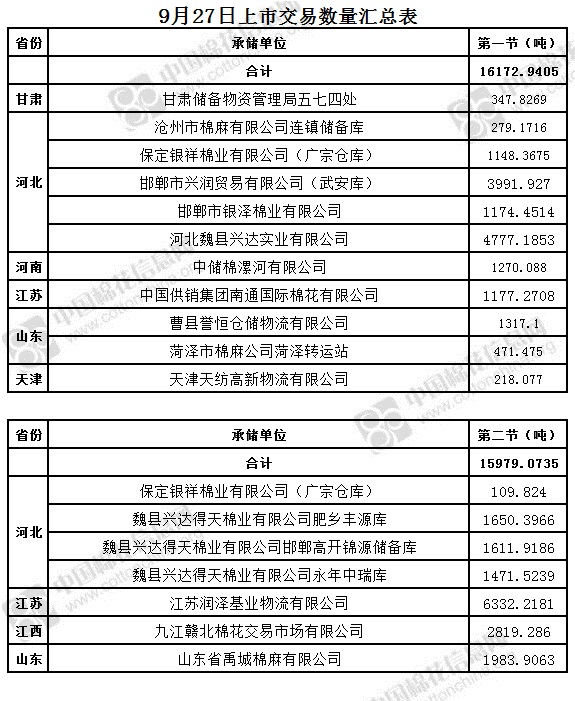 9月27日兩節(jié)共計(jì)輪出儲(chǔ)備棉32152.0140噸。第一節(jié)銷售儲(chǔ)備棉16172.9405噸,其中需要倒垛出庫(kù)58捆。第二節(jié)銷售儲(chǔ)備棉15979.0735噸,其中需要倒垛出庫(kù)42捆。
