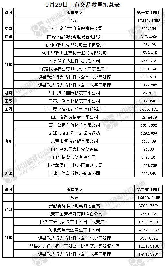 9月29日兩節(jié)共計輪出儲備棉33912.5003噸。第一節(jié)銷售儲備棉17312.4598噸,其中需要倒垛出庫114捆。第二節(jié)銷售儲備棉16600.0405噸,其中需要倒垛出庫58捆。