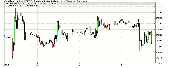 4日紐約期棉全面收跌。1810合約結(jié)算價(jià)76.39美分/磅,跌46點(diǎn);主力1812合約結(jié)算價(jià)76.00美分/磅,跌46點(diǎn)。1903合約結(jié)算價(jià)76.82美分/磅,跌38點(diǎn);其他合約下跌12-28點(diǎn)不等。當(dāng)日12月合約小幅高開(kāi),整個(gè)上半場(chǎng)交易圍繞76.60美分一線震蕩運(yùn)行,美棉出口周報(bào)發(fā)布后本年度裝運(yùn)數(shù)據(jù)再創(chuàng)年度新低,市場(chǎng)應(yīng)聲驟跌,至當(dāng)日低點(diǎn)75.63美分處買(mǎi)盤(pán)發(fā)力,交易重心受支撐上行,但因上漲動(dòng)力不足,未能維持前一日漲勢(shì),以小幅下跌收盤(pán)。上周本年度美國(guó)陸地棉簽約量再創(chuàng)年度新低及中國(guó)大量取消合同導(dǎo)致紐約期棉再度下跌,12月合約繼續(xù)刷新低點(diǎn),棉價(jià)跌勢(shì)仍無(wú)改觀。外圍美元指數(shù)上漲,玉米和小麥期貨上漲,大豆期貨下跌。