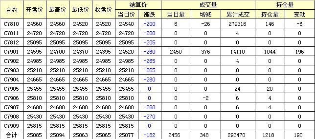主力CY810合約當日交易走勢