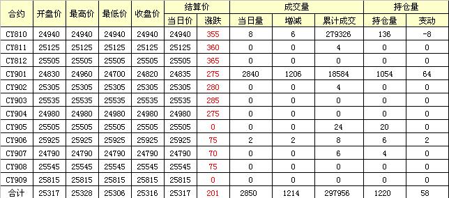 主力CY901合約當(dāng)日交易走勢