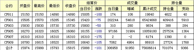 主力CF901合約當(dāng)日交易走勢(shì)圖