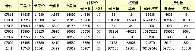 主力CF901合約當(dāng)日交易走勢(shì)圖