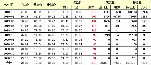主力1812合約近三個交易走勢圖