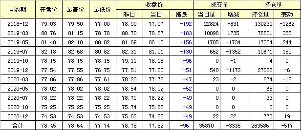主力1812合約近三個交易走勢圖