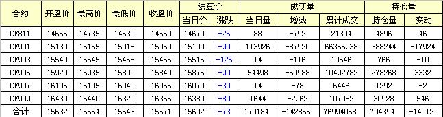 主力CF901合約當日交易走勢圖