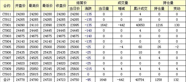 主力CY901合約當日交易走勢