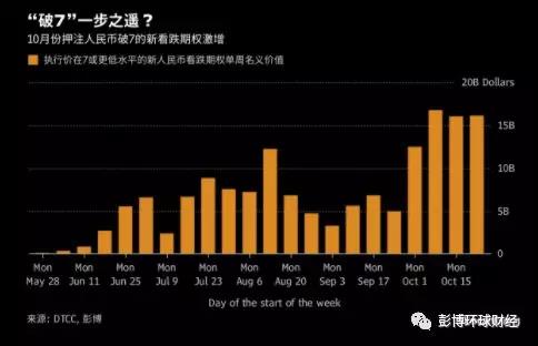 據(jù)彭博對(duì)DTCC數(shù)據(jù)的計(jì)算,本月迄今押注人民幣兌美元將破7的看跌期權(quán)名義價(jià)值升至620億美元,是9月的3倍。期權(quán)價(jià)格顯示,人民幣兌美元下季度達(dá)到7的概率在過去3個(gè)月中幾乎翻一番,周五達(dá)到43%。