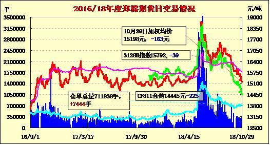 10月29日隔夜鄭棉盤(pán)整,今日盤(pán)中在空頭賣(mài)盤(pán)壓制下走低,日線形成陰線。日內(nèi)成交量放大,持倉(cāng)量增加。基本面情況:根據(jù)美國(guó)國(guó)家颶風(fēng)中心檢測(cè)數(shù)據(jù),周二夜間颶風(fēng)Willa在墨西哥西海岸登陸,強(qiáng)度為三級(jí)。至周三早間Willa強(qiáng)度已經(jīng)減弱為熱帶低壓,隨著其沿東北方向移動(dòng),給途經(jīng)區(qū)域帶來(lái)降雨天氣。周二夜間西德州出現(xiàn)惡劣天氣,預(yù)計(jì)周三將持續(xù)降雨。降雨分布范圍較廣,預(yù)計(jì)將帶來(lái)小到中度降雨,局部區(qū)域可能降雨量較大,戶(hù)外作業(yè)因此有所停滯。周四預(yù)計(jì)該地區(qū)將以大部晴朗為主,氣溫有所回升,預(yù)計(jì)近五天都將以晴朗天氣為主,將有助于土壤濕度降低硬度恢復(fù)。