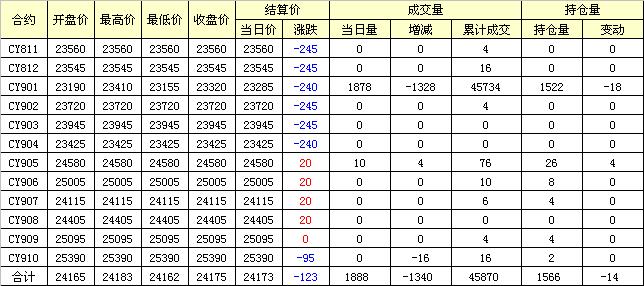 主力CY901合約當(dāng)日交易走勢(shì)